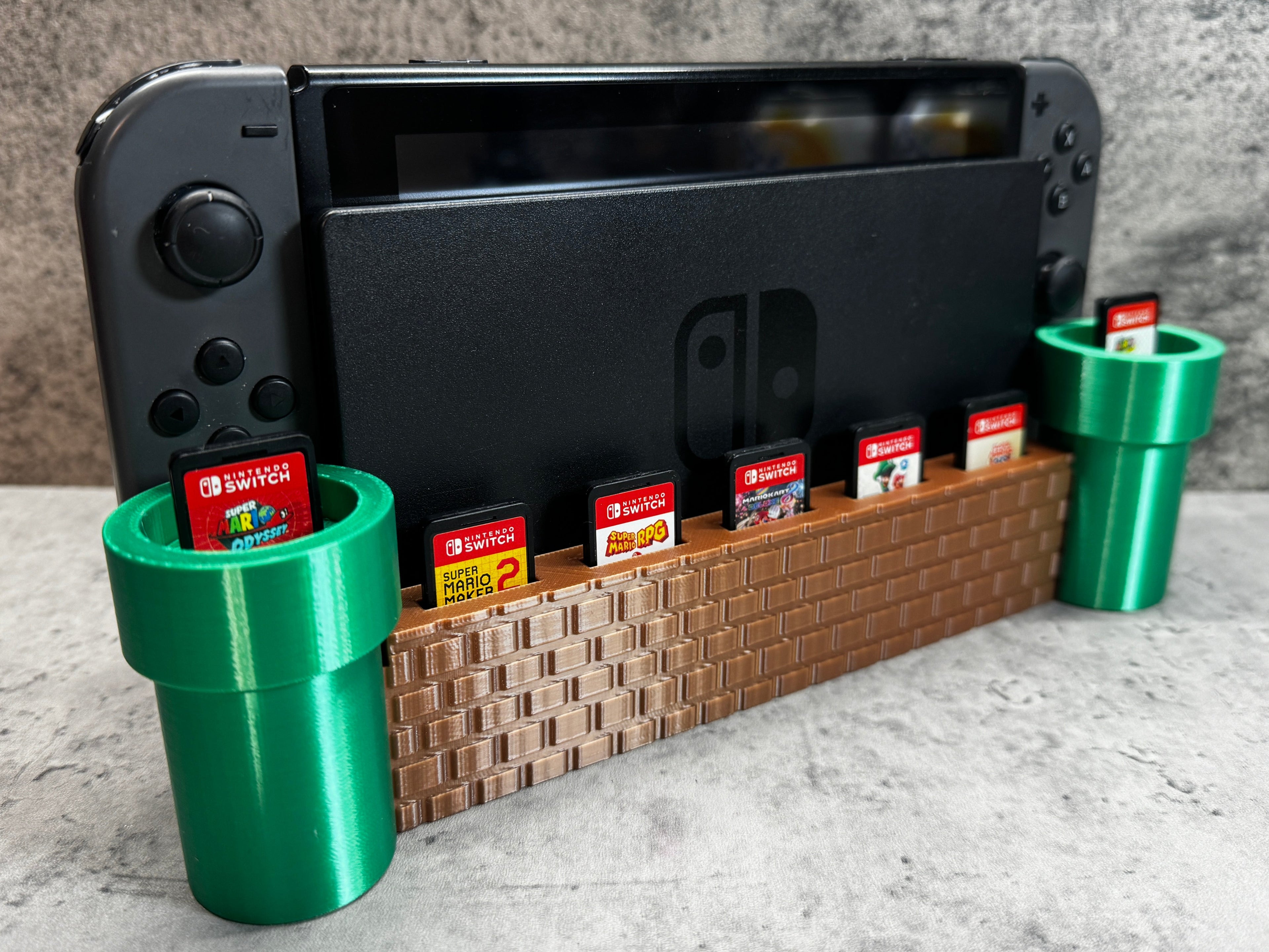 Are you looking for a cool way to customize your Switch? This Mario themed dock is the way to do it. This dock can also hold 7 Switch games. Installation is easy and safe. The dock fits both the Original and OLED Switch. This is designed by Noob3DPrinting and I am an authorized seller.